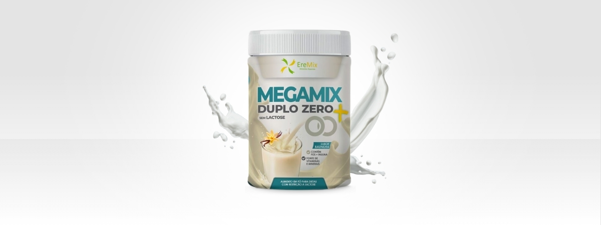 Megamix Duplo Zero+ é um alimento em pó para dietas com restrição a lactose isento de lactose. Especialmente formulado para oferecer vitaminas, minerais, proteína e fibras, com baixos teores de gorduras. Oferece todos os benefícios do whey protein em sua formulação, elaborada 100% com proteínas lácteas. Sua formulação permite diluições normocalóricas ou hipercalóricas. Não contém glúten. Não contém lactose.