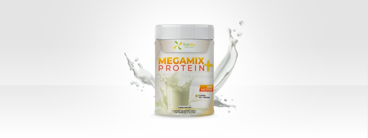 Megamix Protein+ é um alimento em pó para dietas com restrição de lactose, totalmente isento desse componente. Formulado com vitaminas, minerais, proteínas e fibras alimentares (frutooligossacarídeo e inulina), possui composição hiperprotéica, combinando proteínas vegetais e lácteas. Pode ser utilizado em diluições normocalóricas ou hipercalóricas. Não contém glúten.